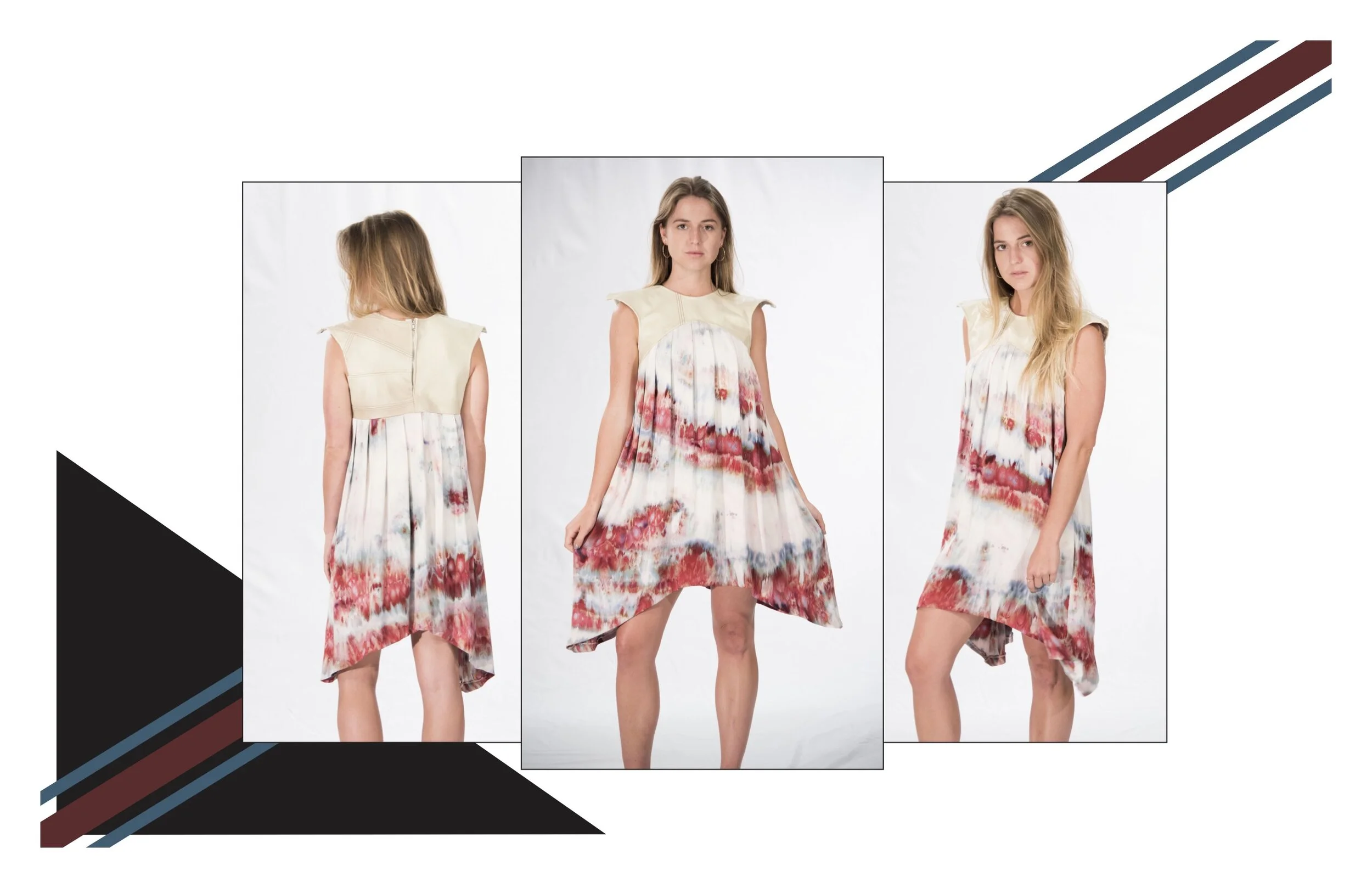 In my second semester of my junior year we were also tasked to create a fully up-cycled look from 2 different non apparel products using only draping for pattern making method. For my look I chose to use an ottoman and bedsheets I got from Goodwill. I also used an ice dye technique to create a beautiful marbled textile.