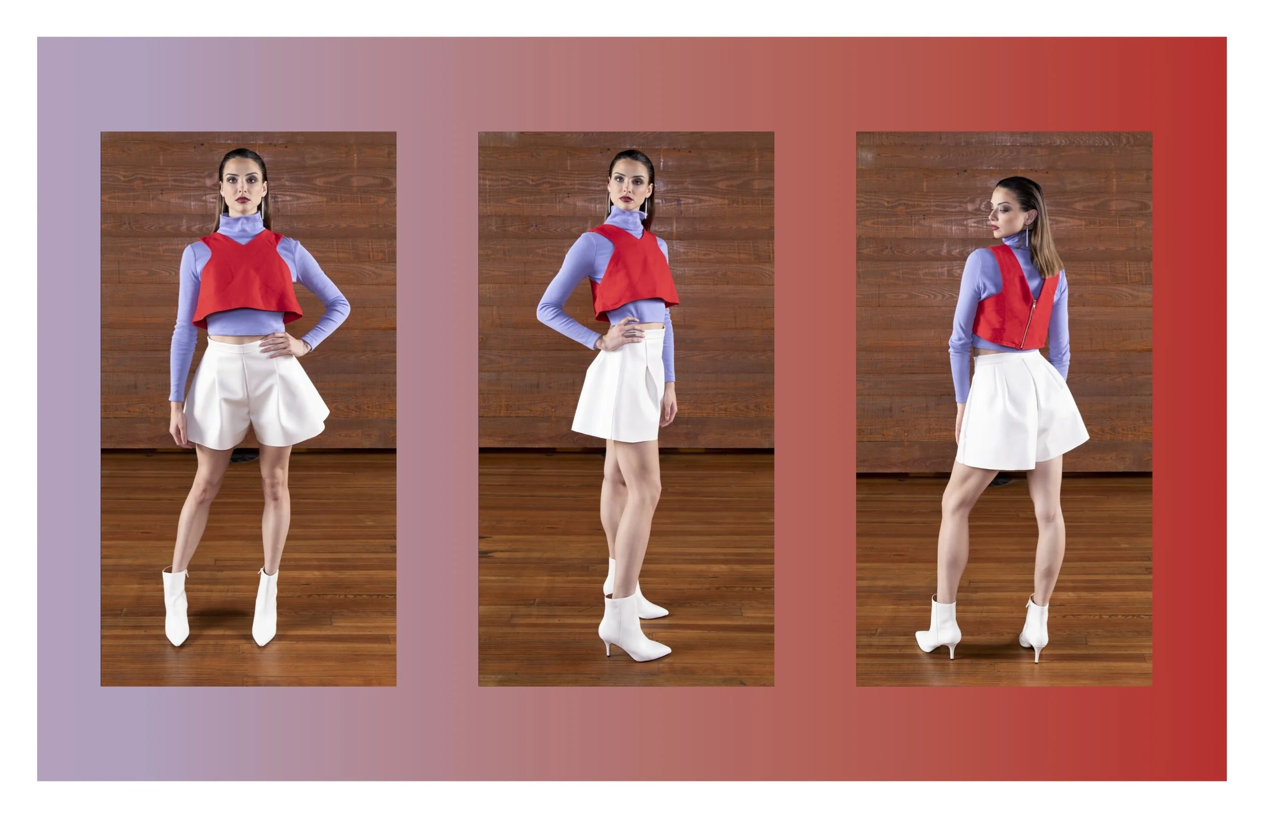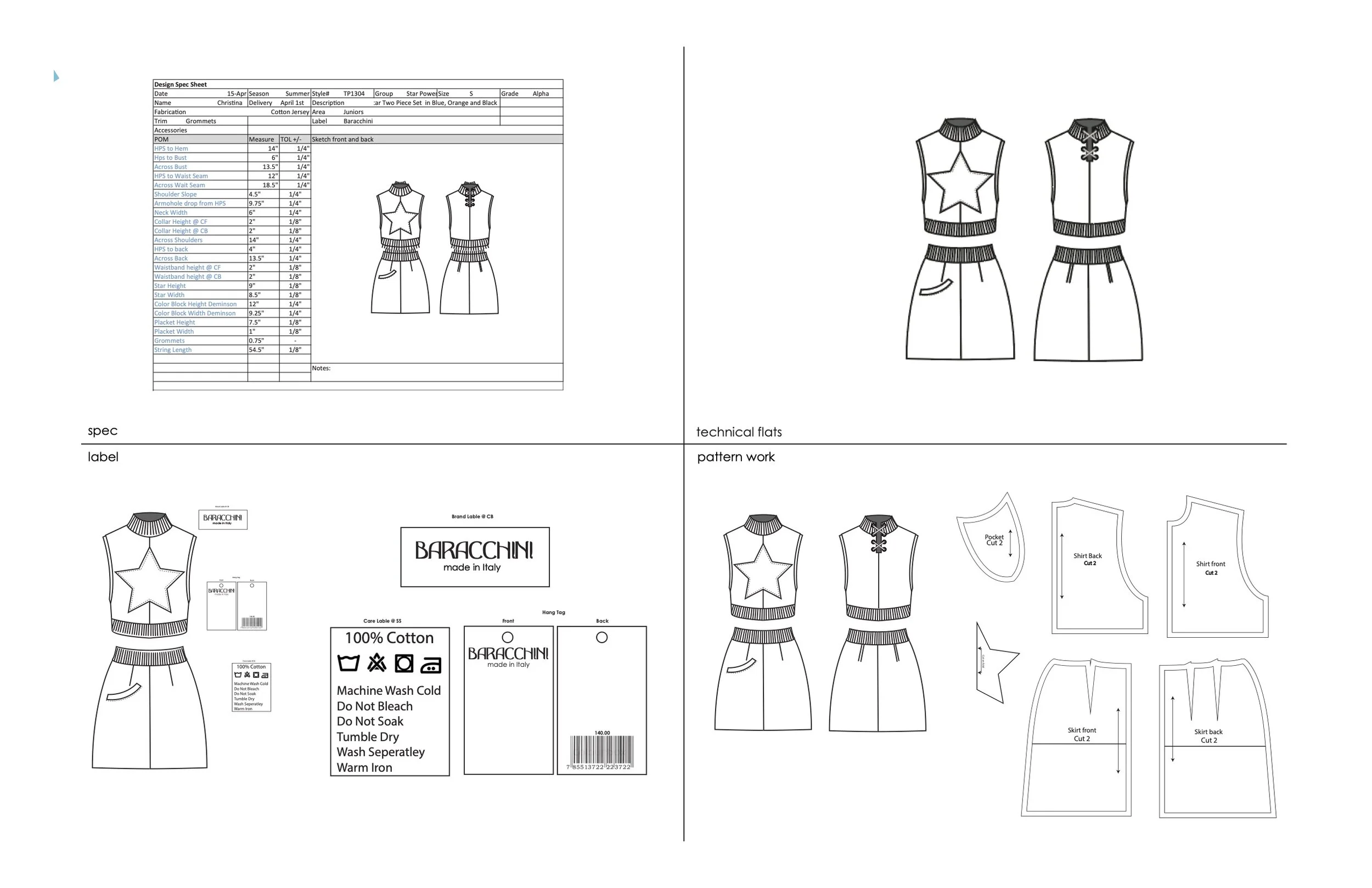 In my second semester of my junior year we were all handed a trash bag full of old t-shirts. We were told that we had to create a full look using only the t-shirts in the bag. This project was all about up-cycling and sustainability with a focus on the more technical side of the industry like creating grading worksheets, care content labels, and technical flats. My sustainable look was inspired by the Pop Art culture movement.